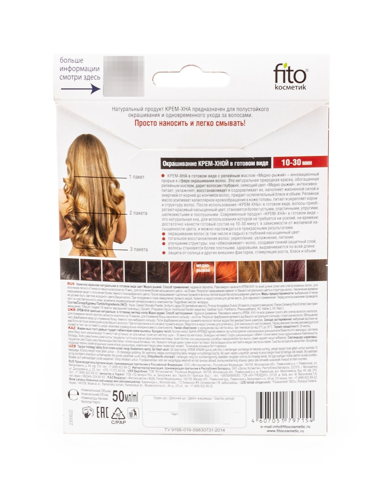 Крем-хна Фитокосметик в готовом виде Медно-рыжий с репейным маслом 50 мл 1 шт