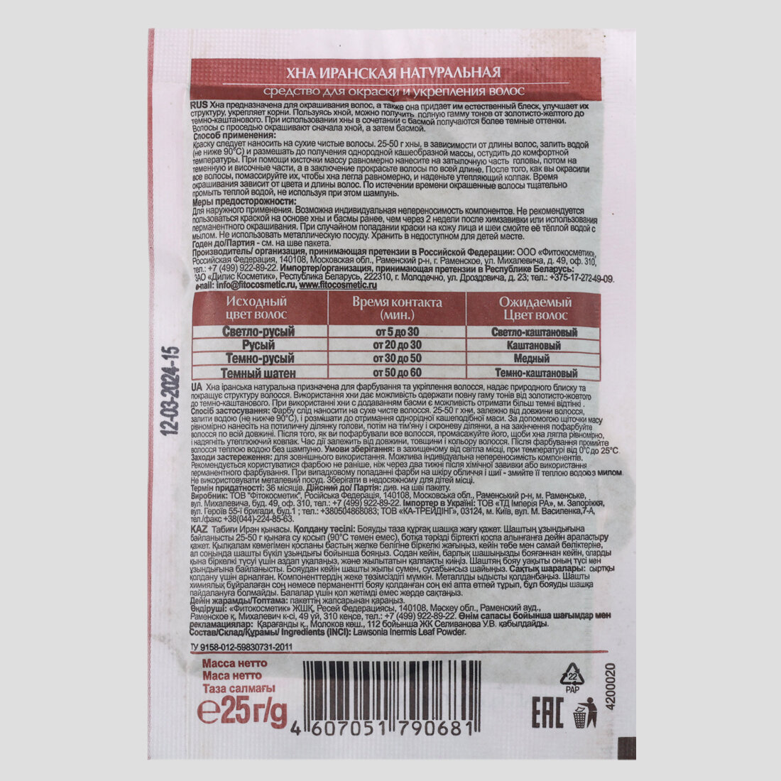 Хна иранская натуральная 25гбум.упаковка, Fitoкосметик