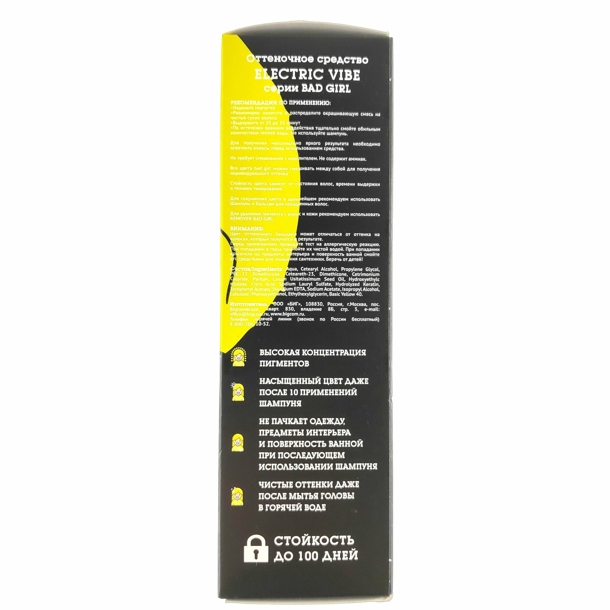 Бэд Герл (Bad Girl) Оттеночный бальзам, яркое окрашивание - пигмент прямого действия Electric Vibe (неоновый желтый)