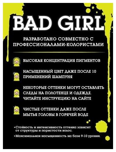 Купить BAD GIRL, Оттеночное средство, неоновый желтый, Electric Vibe, 150 мл