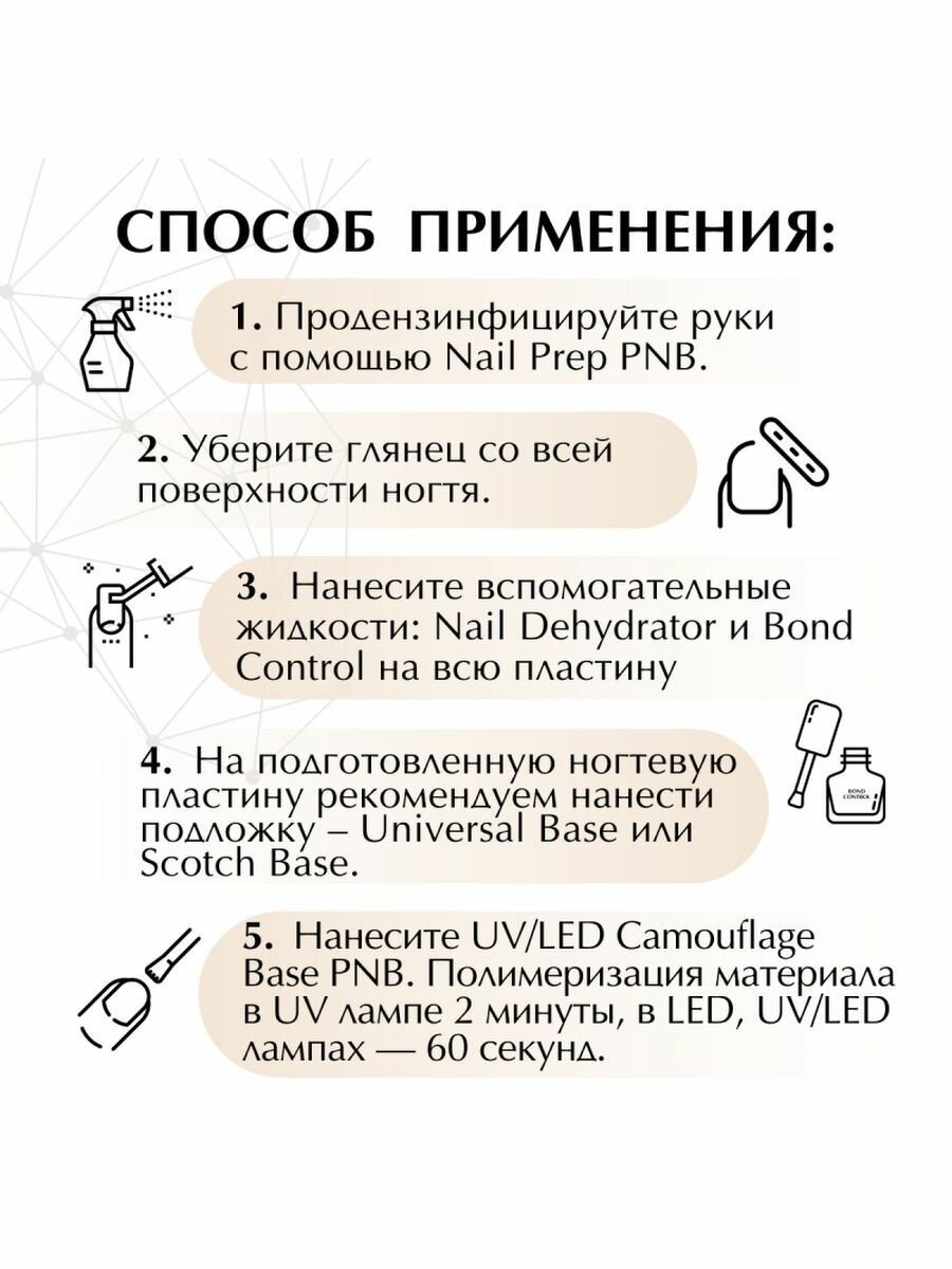 PNB Camouflage Base цветная камуфлирующая каучуковая база для ногтей и гель-лака UV/LED бежевая 30 мл