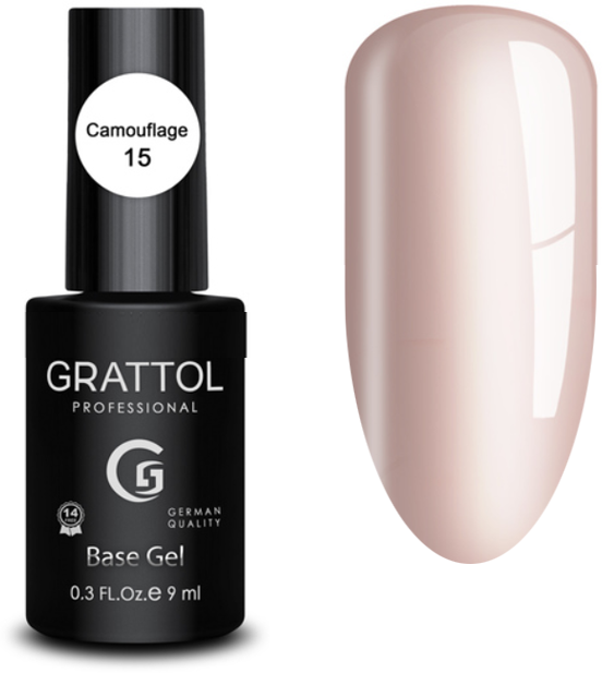 Камуфлирующая база для ногтей Grattol Camouflage Base Gel №15, 9 мл