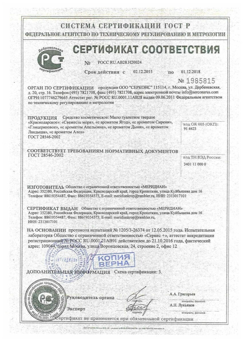 Мыло туалетное 90г Краснодарское с Ароматом Ландыша Меридиан