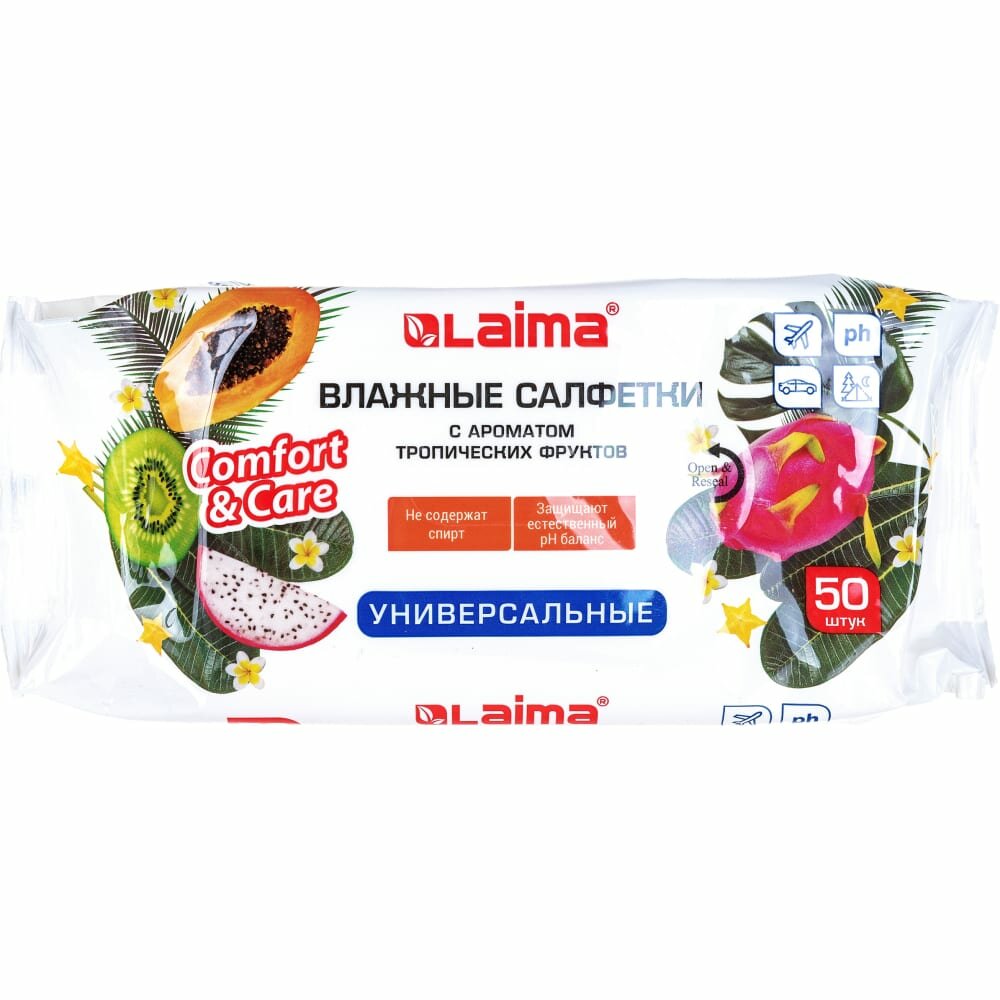 Салфетки влажные 50 шт LAIMA/лайма универсальные очищающие для всей семьи тропические фрукты 128076