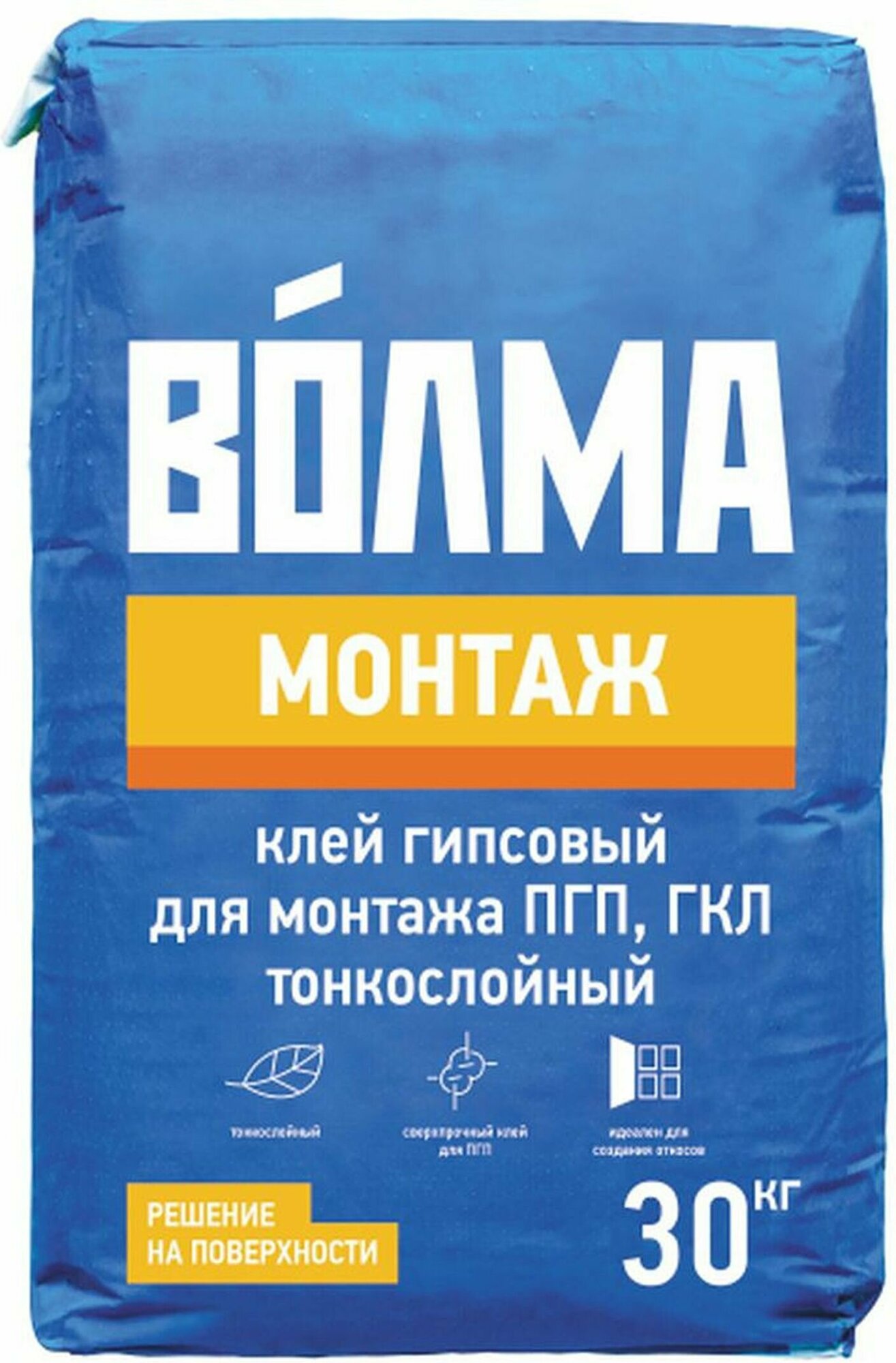 Волма Монтаж клей гипсовый монтажный для ПГП (30кг) / волма Монтаж клей гипсовый для монтажа ПГП тонкослойный (30кг)
