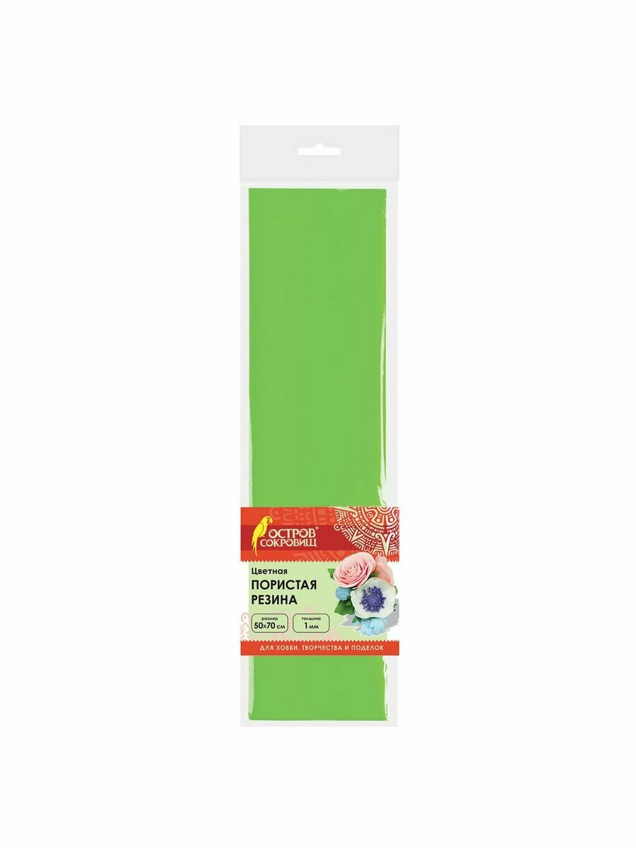 Пористая резина (фоамиран) для творчества, зеленая, 50х70 см, 1 мм, остров сокровищ