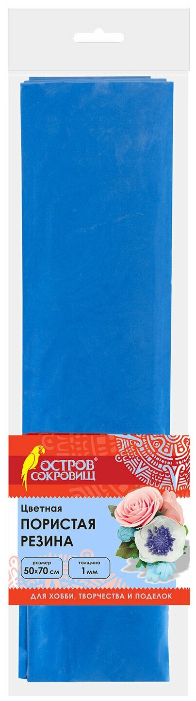 Купить Пористая резина (фоамиран) для творчества, синяя, 50*70 см, 1 мм, остров сокровищ, 661686
