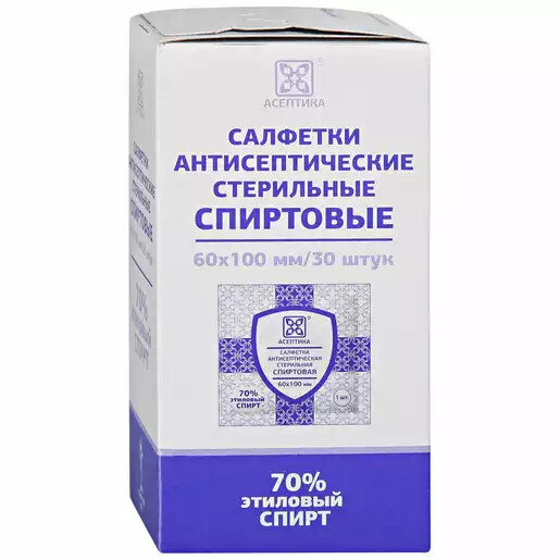 Спиртовые салфетки антисептические 60х100 мм комплект 30 шт, асептика 6 шт, короб, ЦБ03230-МО05