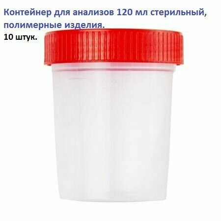 Купить Контейнер полимерный для анализов и биопроб одноразовый 120 мл, с крышкой, стерильный, набор 10 штук.