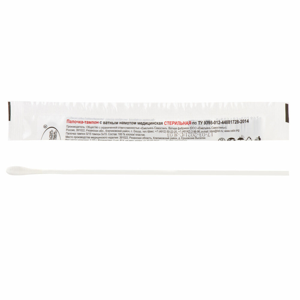 Зонд-тампон пластик/хлопок, комплект 100 шт., намотка 5 мм, стерильный, емельянъ савостинъ, индивидуальная упаковка, длина 150 мм