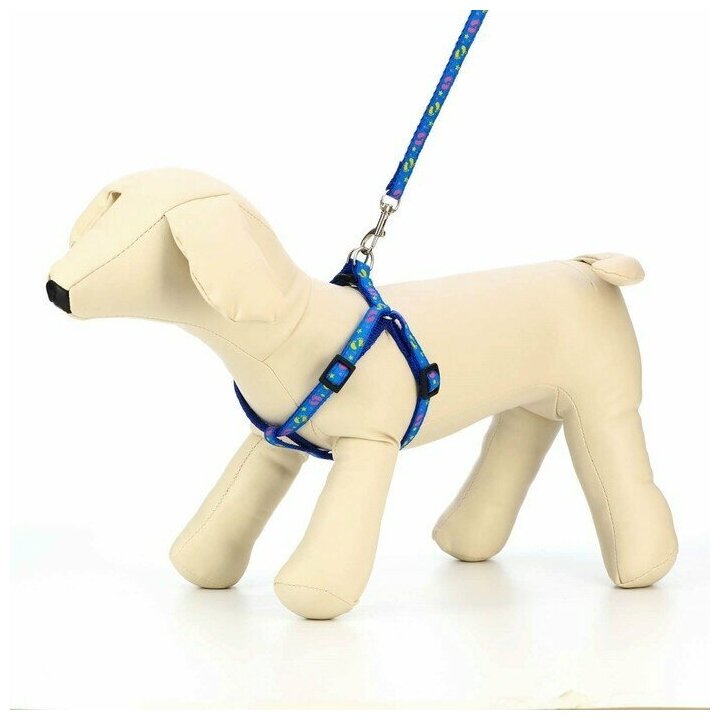 Шлейка для собак 23-35 см, Поводок для собак 120 см, Комплект "Цветные следы", ширина 1 см синий