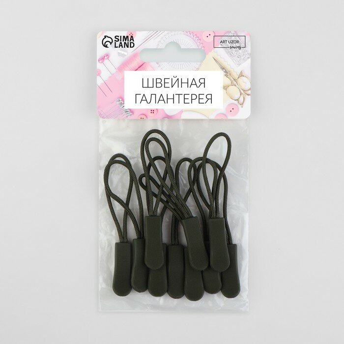 Арт Узор Пуллер для молнии, 2,5 см, 6 x 0,8 см, 10 шт, цвет хаки