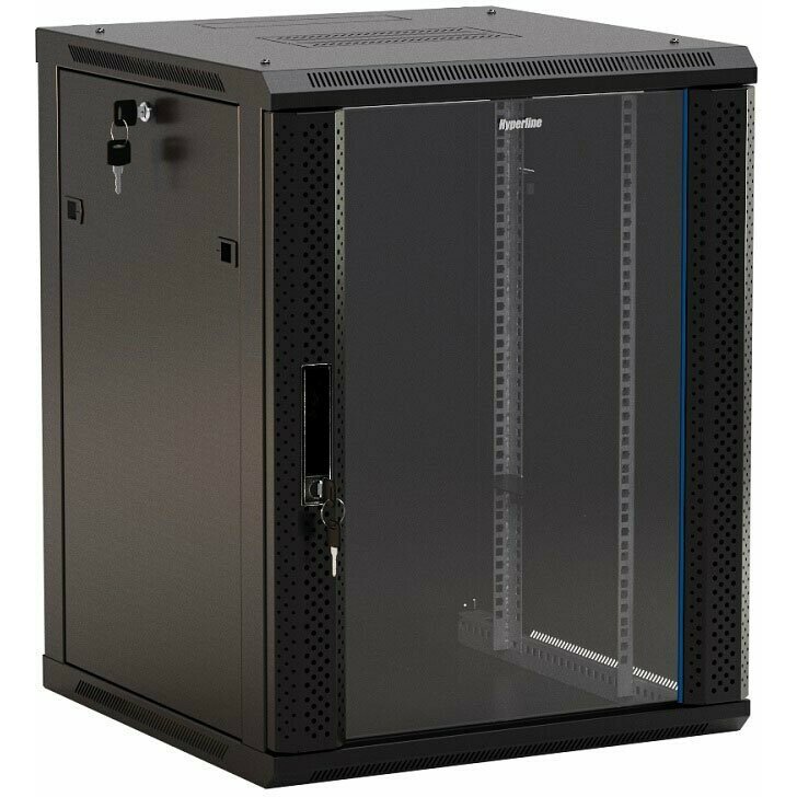 Шкаф настенный Hyperline 19-дюймовый, 6U, 367x600х450мм стеклянная дверь с перфорацией по бокам