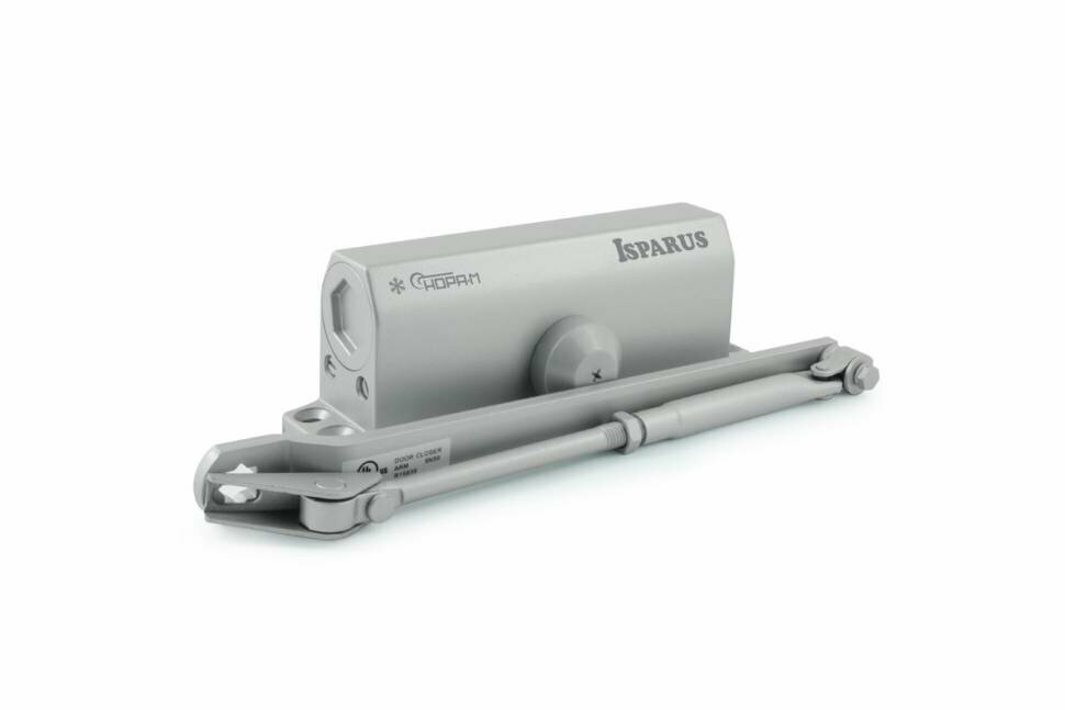 Дверной доводчик ISPARUS 440 морозостойкий, для дверей от 80 до 140 кг, серебро 17202
