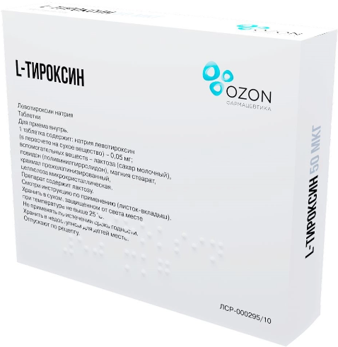 L-тироксин, таблетки 50 мкг, 50 шт.