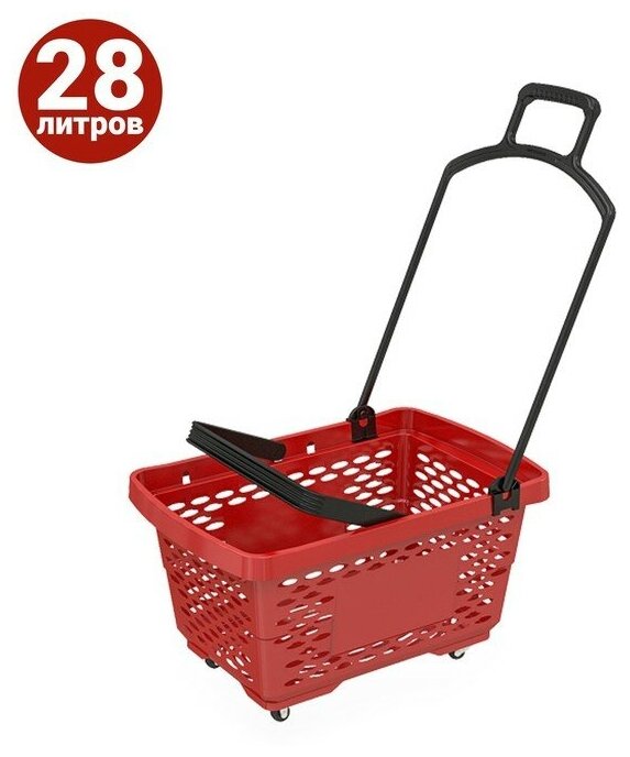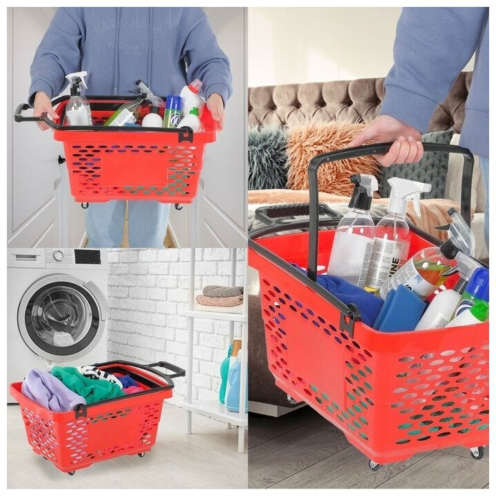 Корзина-тележка на 4 колесах пластиковая, 28 л, с 2 пластиковыми ручками, цвет красный интересное: