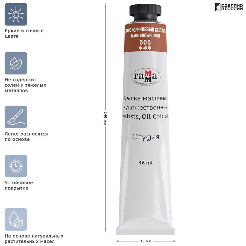 Краска масляная художественная Гамма "Студия", туба 46мл, марс коричневый светлый (0.00.А046.605)