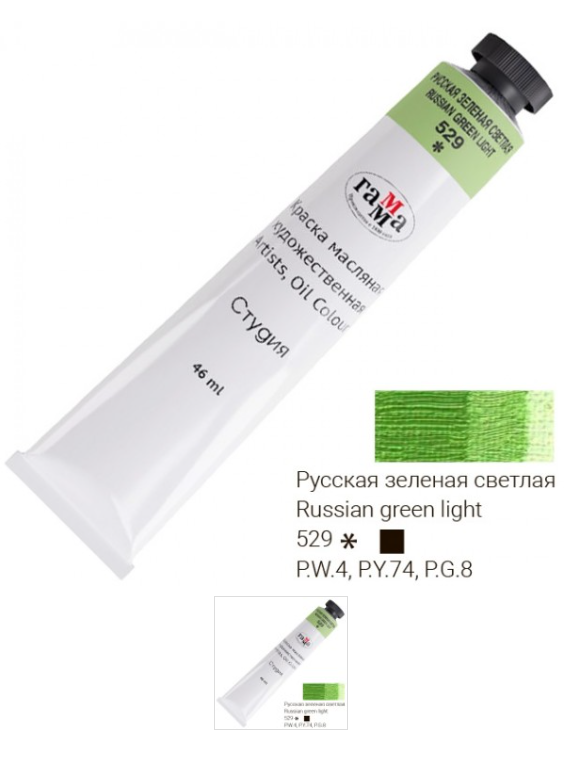 Краска масляная художественная Гамма "Студия", туба 46мл, русская зеленая светлая (0.00.А046.529)