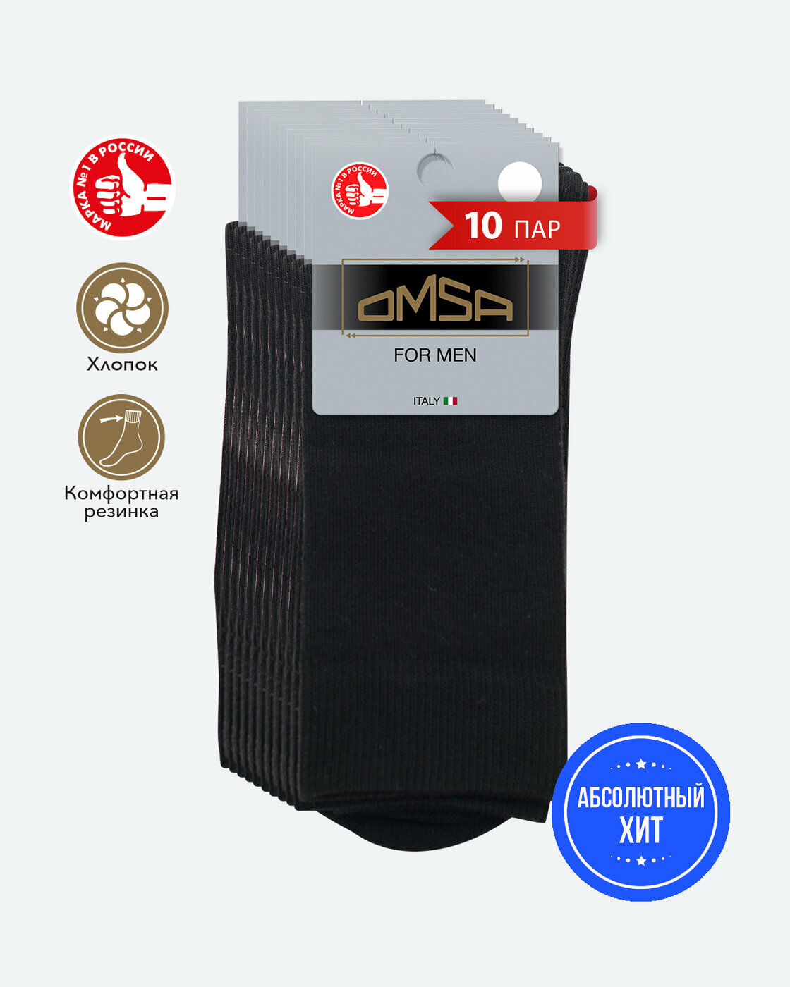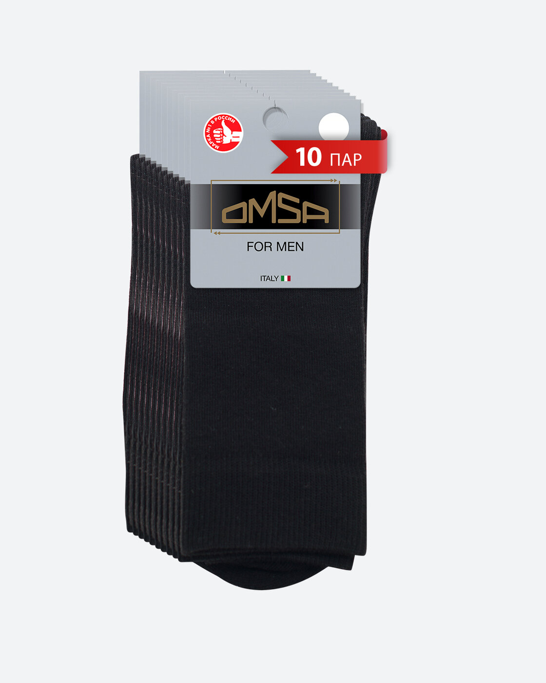 Носки мужские OMSA ECO 401, набор 10 пар, классические высокие из хлопка Nero 45-47