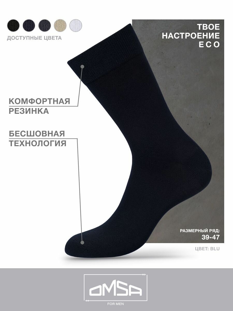 Носки мужские OMSA ECO 401, высокие, комплект 10 шт, Цвет Blu, Размер 39-41
