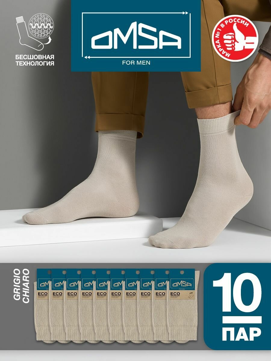 Носки мужские OMSA ECO 401, высокие, комплект 10 шт, Цвет Grigio Chiaro, Размер 42-44