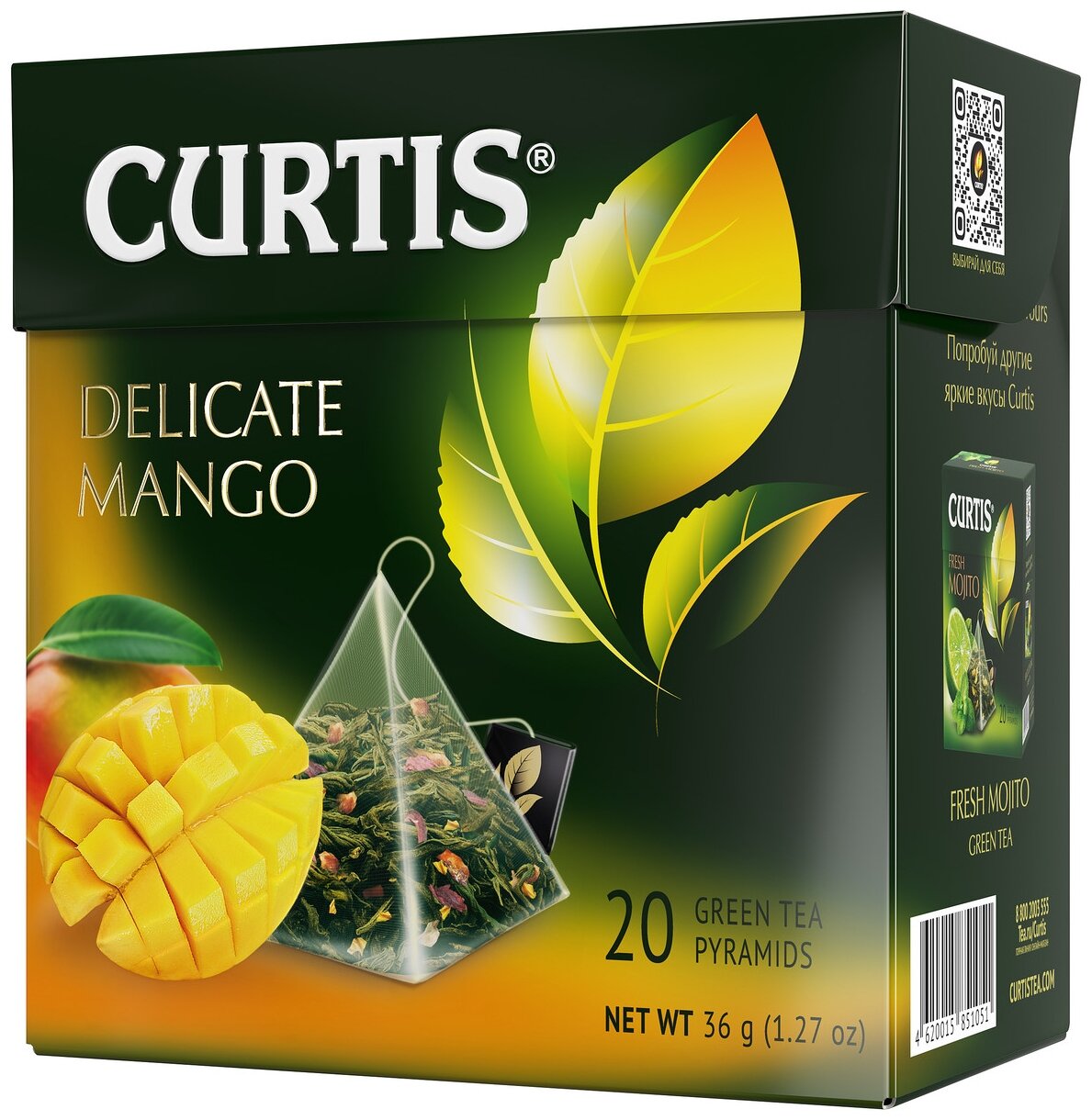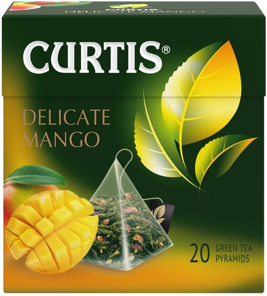 Чай в пирамидках, "Curtis Delicate Mango Green Tea", зеленый, аромат, (20 пакетиков по 1,8г) 2 упаковки