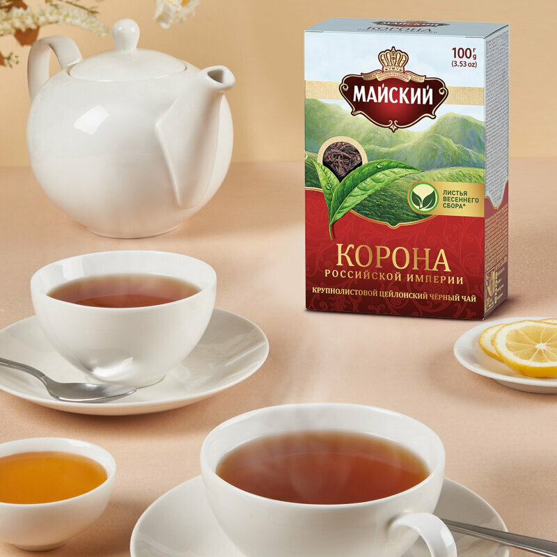 Чай черный Майский "Корона Российской Империи" 100 г крупнолистовой