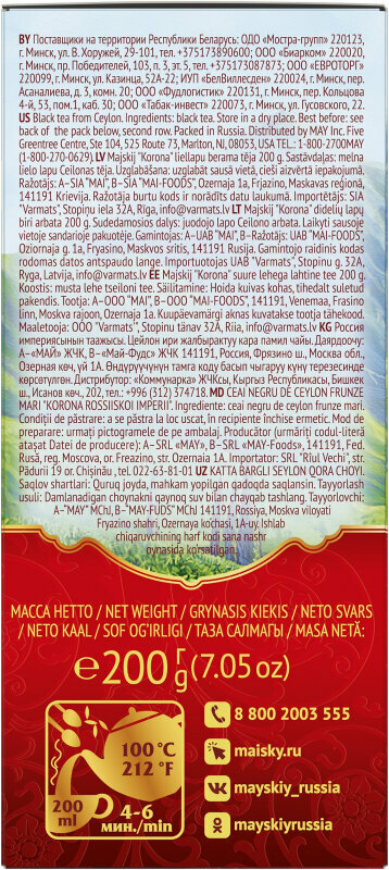 Купить Чай Майский Корона Российской Империи черный крупнолистовой, 200г 13986