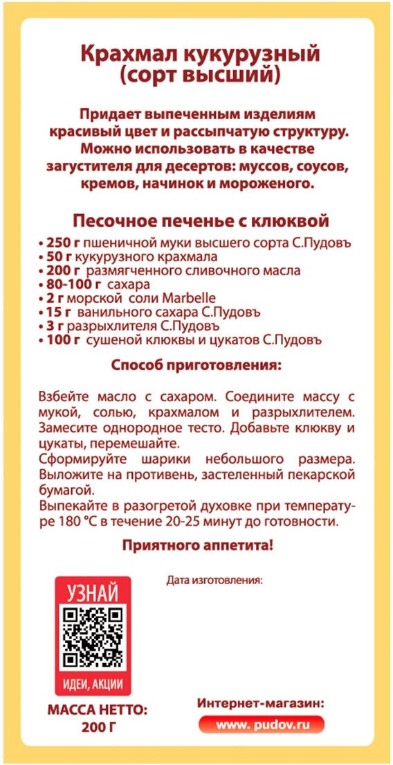 Крахмал кукурузный С. Пудовъ, 200 гр.