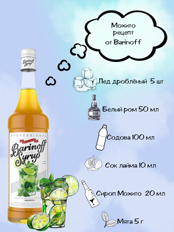Сироп Barinoff Мохито (для коктейлей, десертов, лимонада и мороженого), 1л