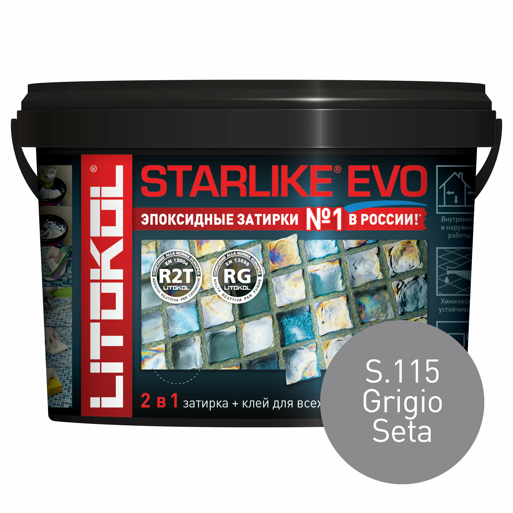 Купить Затирка для плитки эпоксидная LITOKOL STARLIKE EVO (старлайк ЭВО) S.115 GRIGIO SETA, 2,5кг