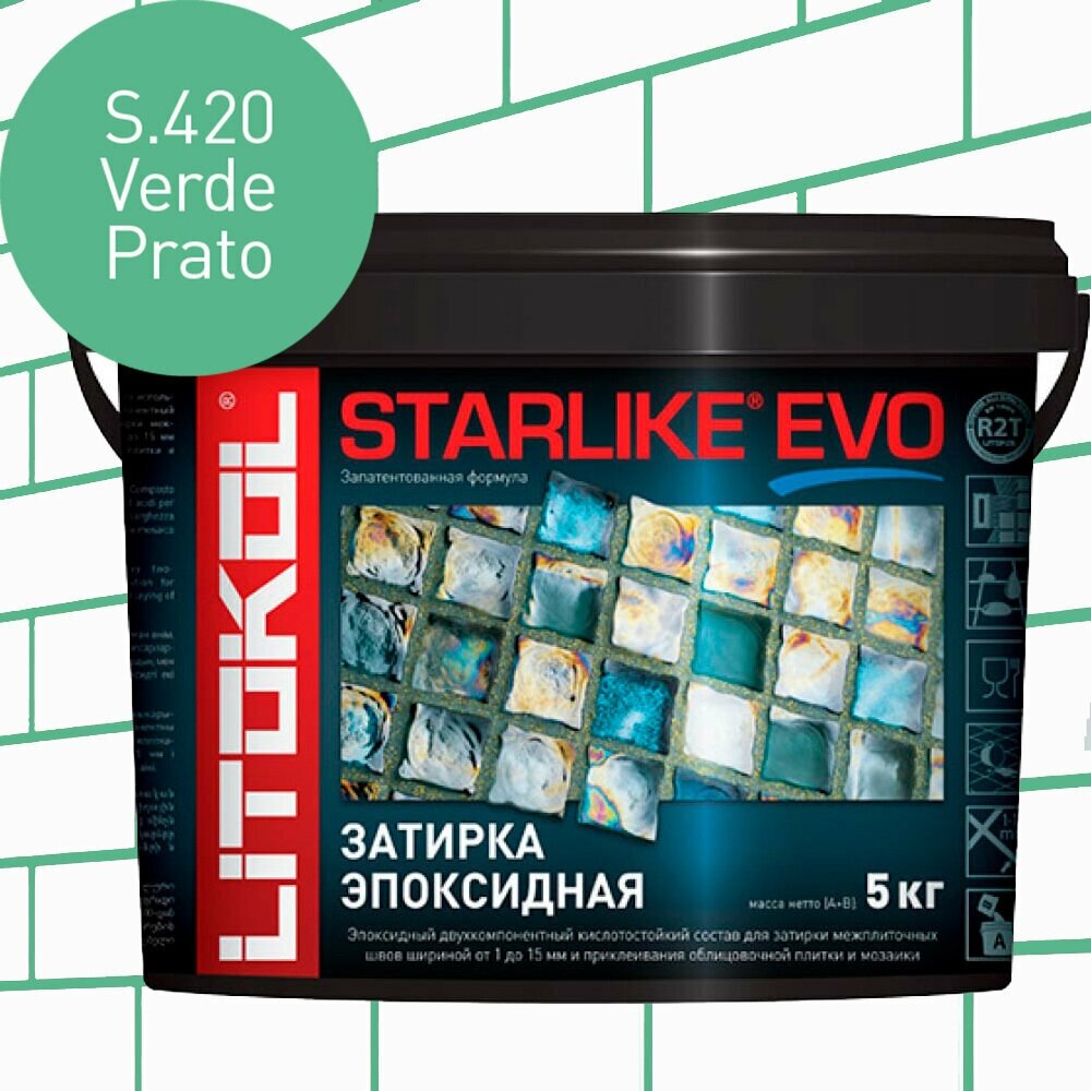 Купить Затирка для плитки эпоксидная LITOKOL STARLIKE EVO (старлайк ЭВО) S.420 VERDE PRATO, 5кг