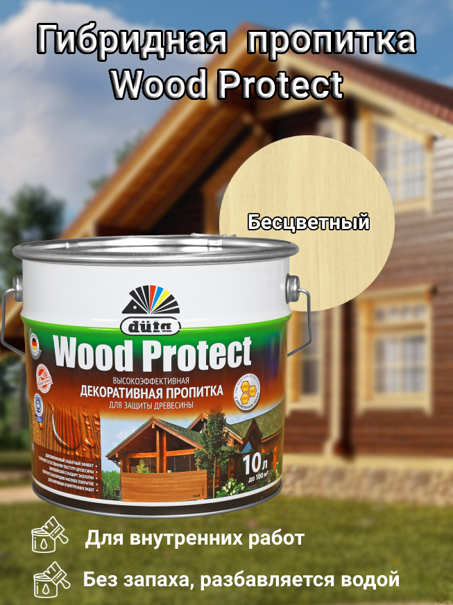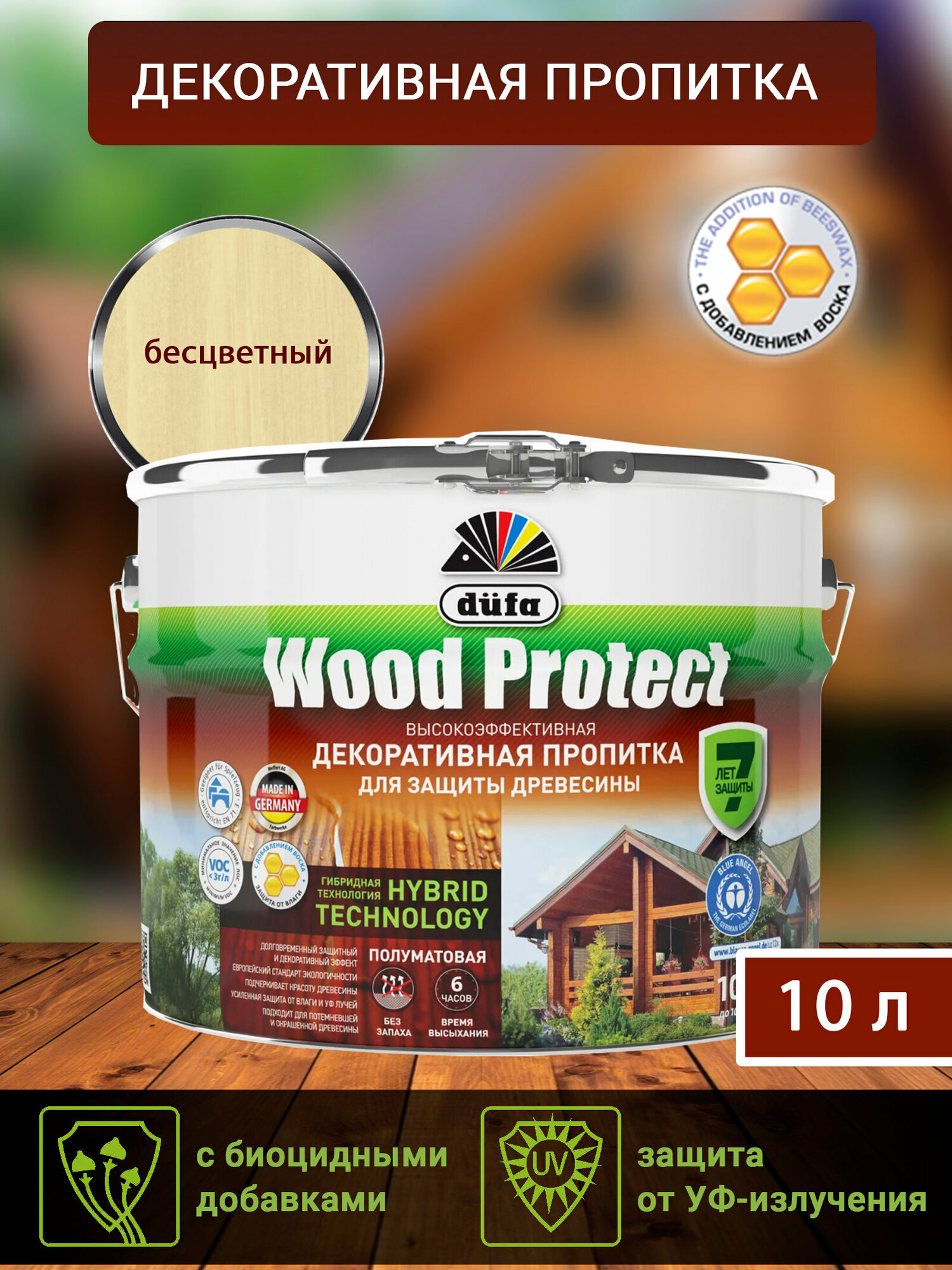 Пропитка декоративная Dufa Wood Protect для защиты древесины бесцветный 10л
