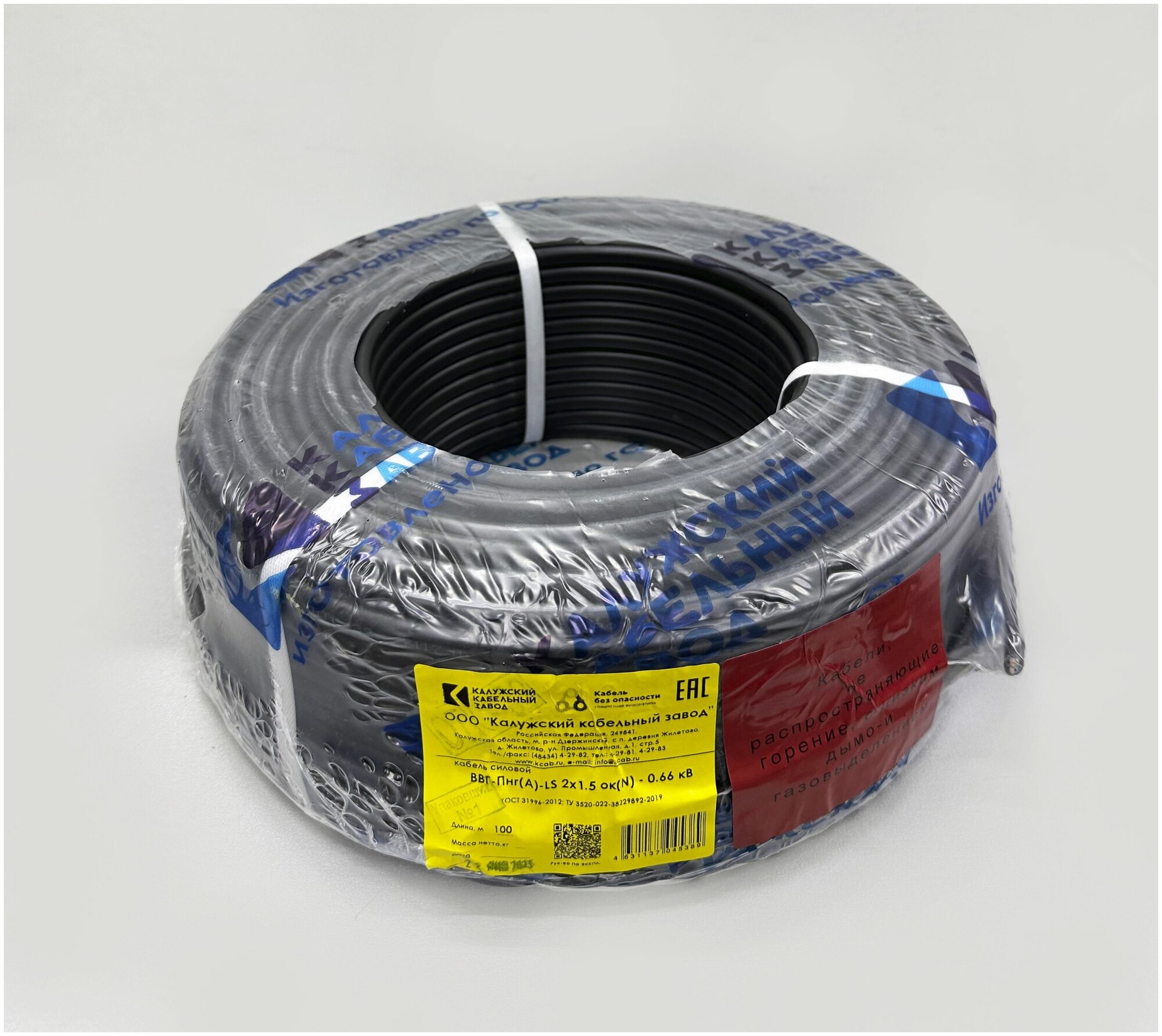 Электрический Кабель ВВГ-Пнг(А)-LS 2х1,5 100м. ГОСТ Калужский кабельный завод.