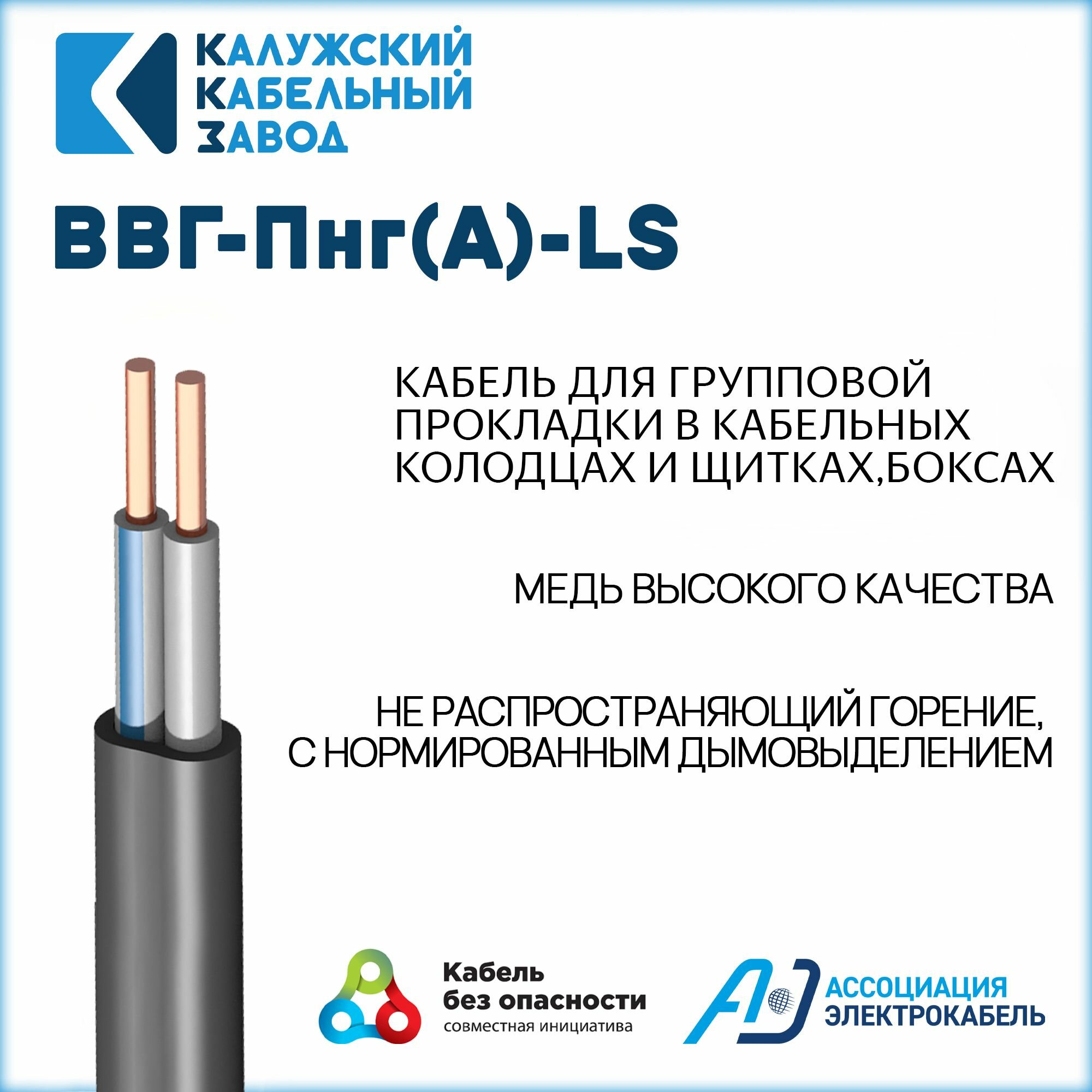 Кабель ВВГ-Пнг(А)-LS 2х2,5 ГОСТ Калужский кабельный завод, 20 метров