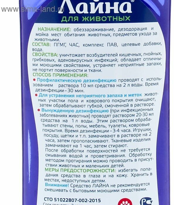 Лайна дезинфицирующее средство для животных 1 л