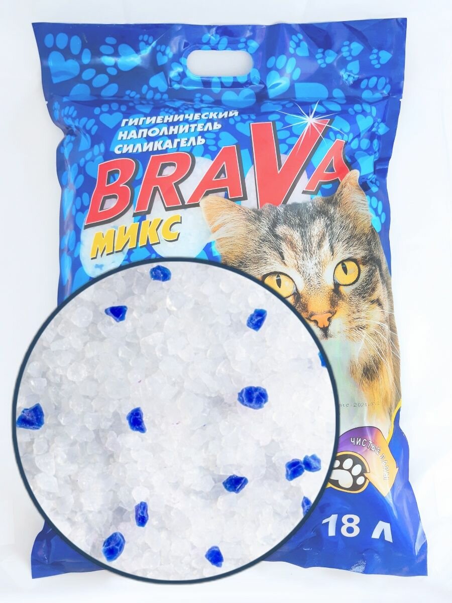 Наполнитель для кошачьего туалета brava микс силикагель 18л