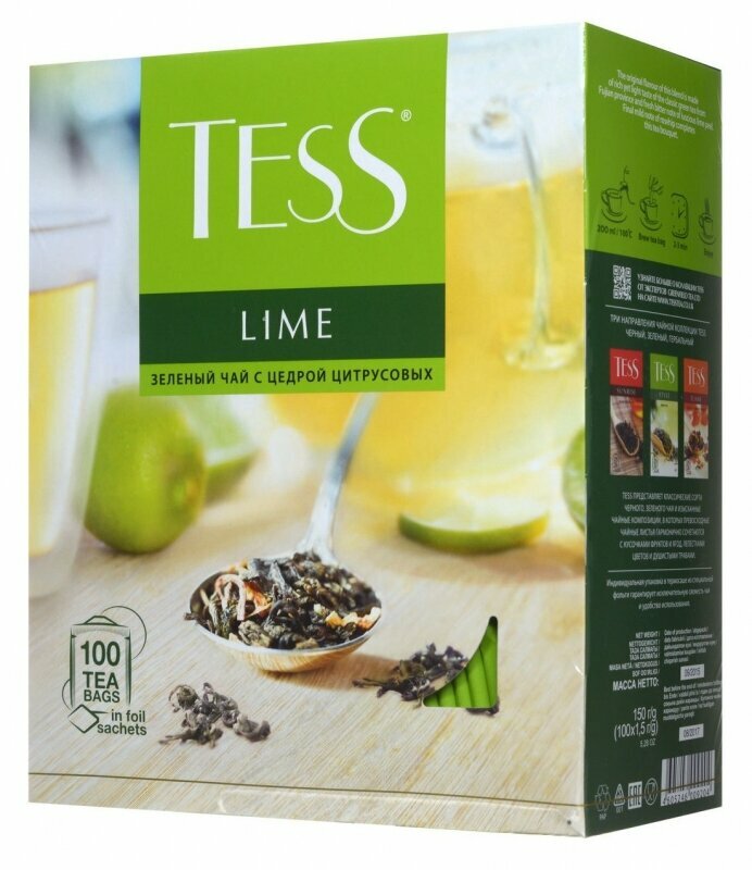 Купить Чай TESS (Тесс) "Lime", зеленый с цедрой цитрусовых, 100 пакетиков по 1.5 г, 0920-09