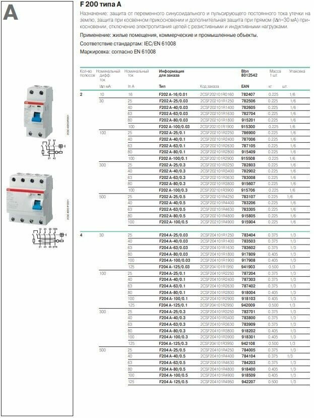 | Плюсы: | Оригинал АВВ, сработает и при постоянном и при переменном токе утечки, проверено |