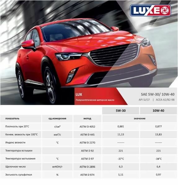 LUXE "LUX" 10w40 SJ/CF полусинтетика 4л (1/4)