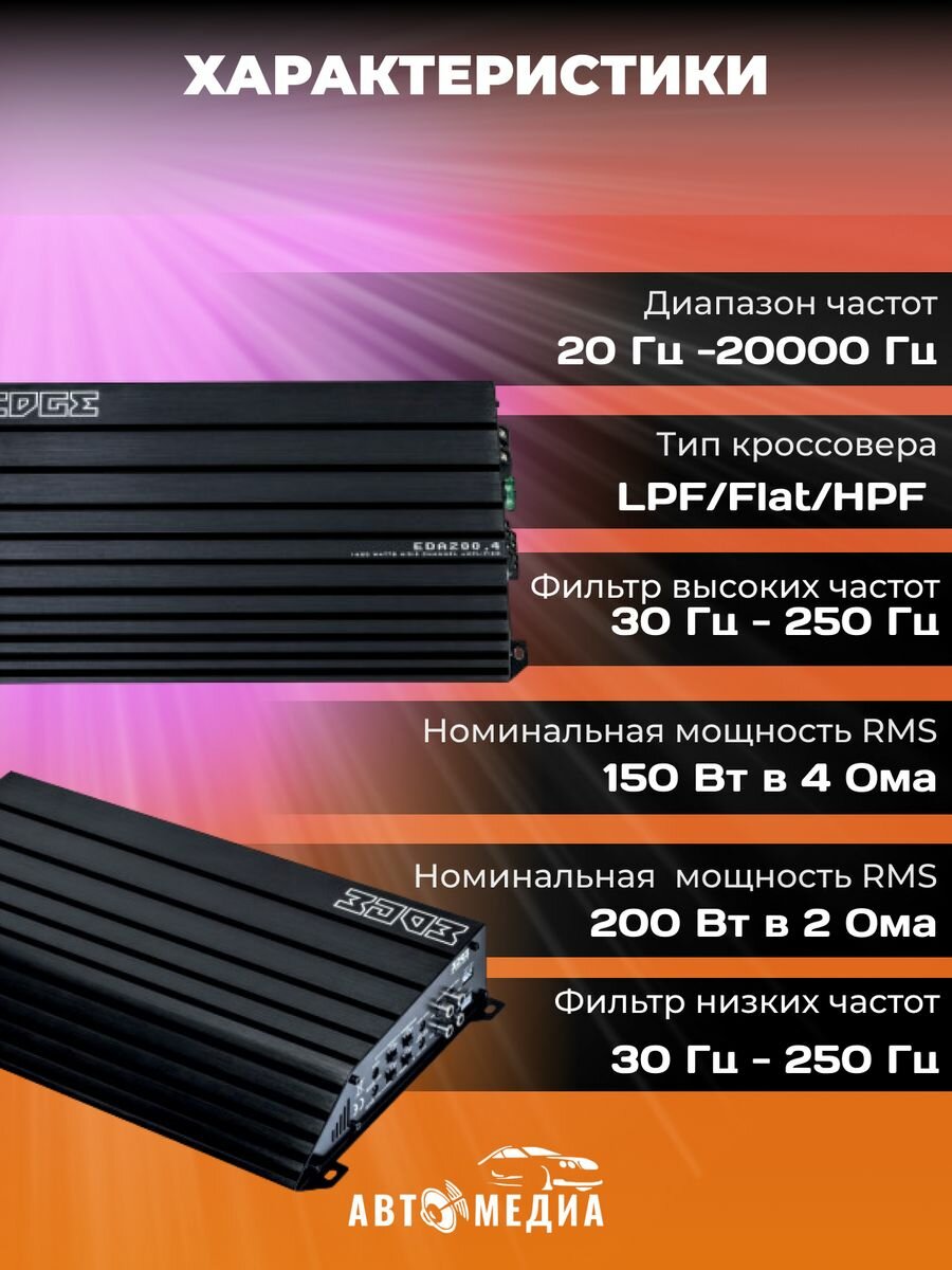Ниже Вы можете прочитать отзывы на Автоусилитель Edge EDA 200.4-E7, ознакомится с подробными характеристиками, посмотреть интересные обзоры и фотографии на Автоусилитель Edge EDA 200.4-E7.