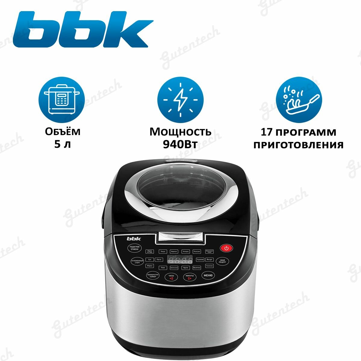 Мультиварка электрическая BBK BMC052 черный, мощность 940 Вт, объем чаши 5 л, автоматические программы приготовления, программа "свой рецепт"