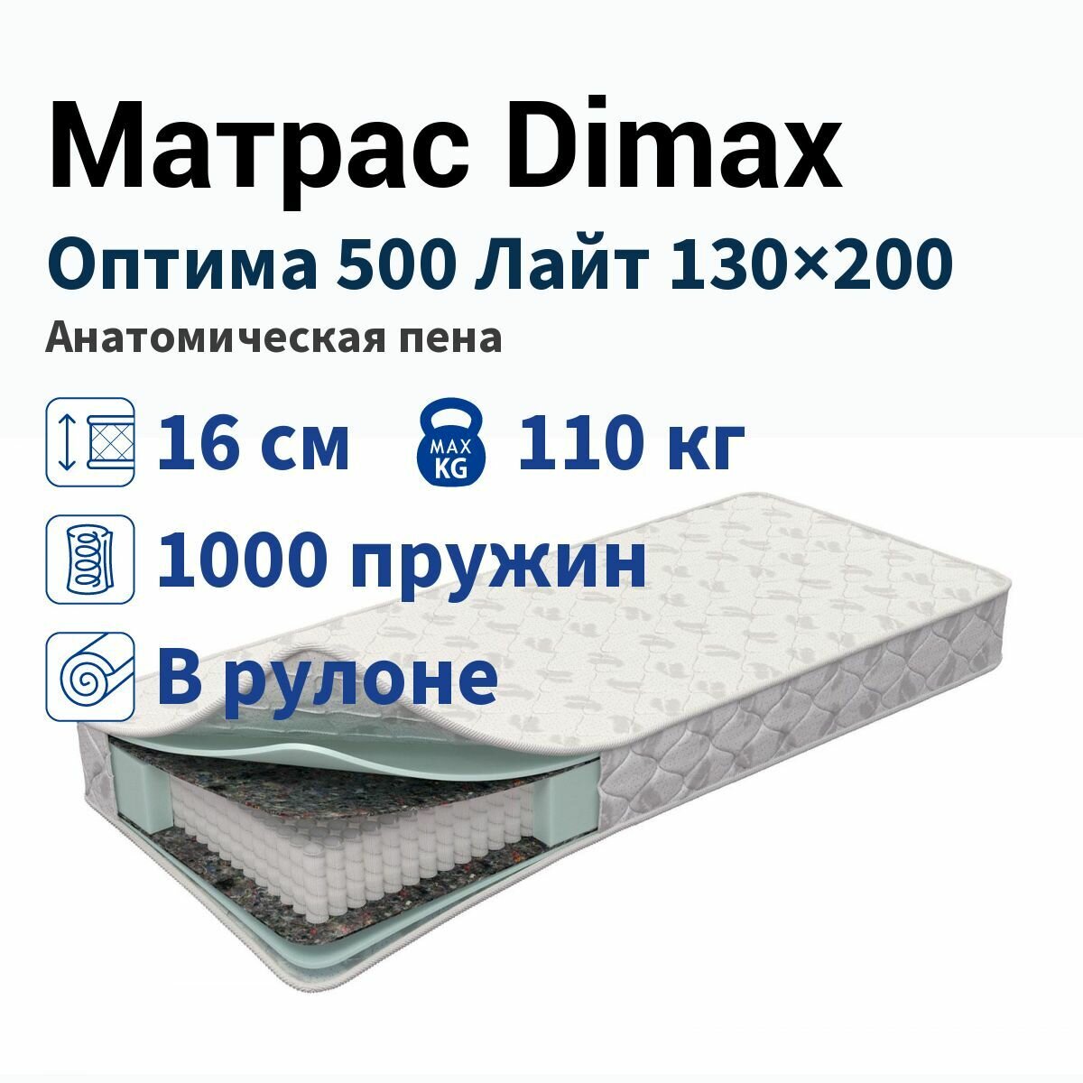 Матрас Dimax Оптима 500 Лайт, Размер 130х200 см