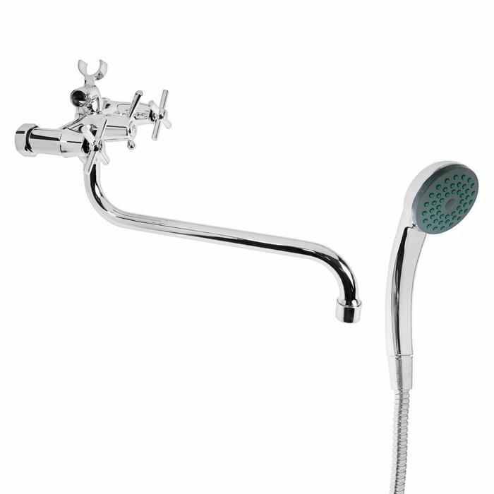 Cмеситель для ванны "Эверест" B22-316, двухвентильный, круглый излив, душевой набор, хром