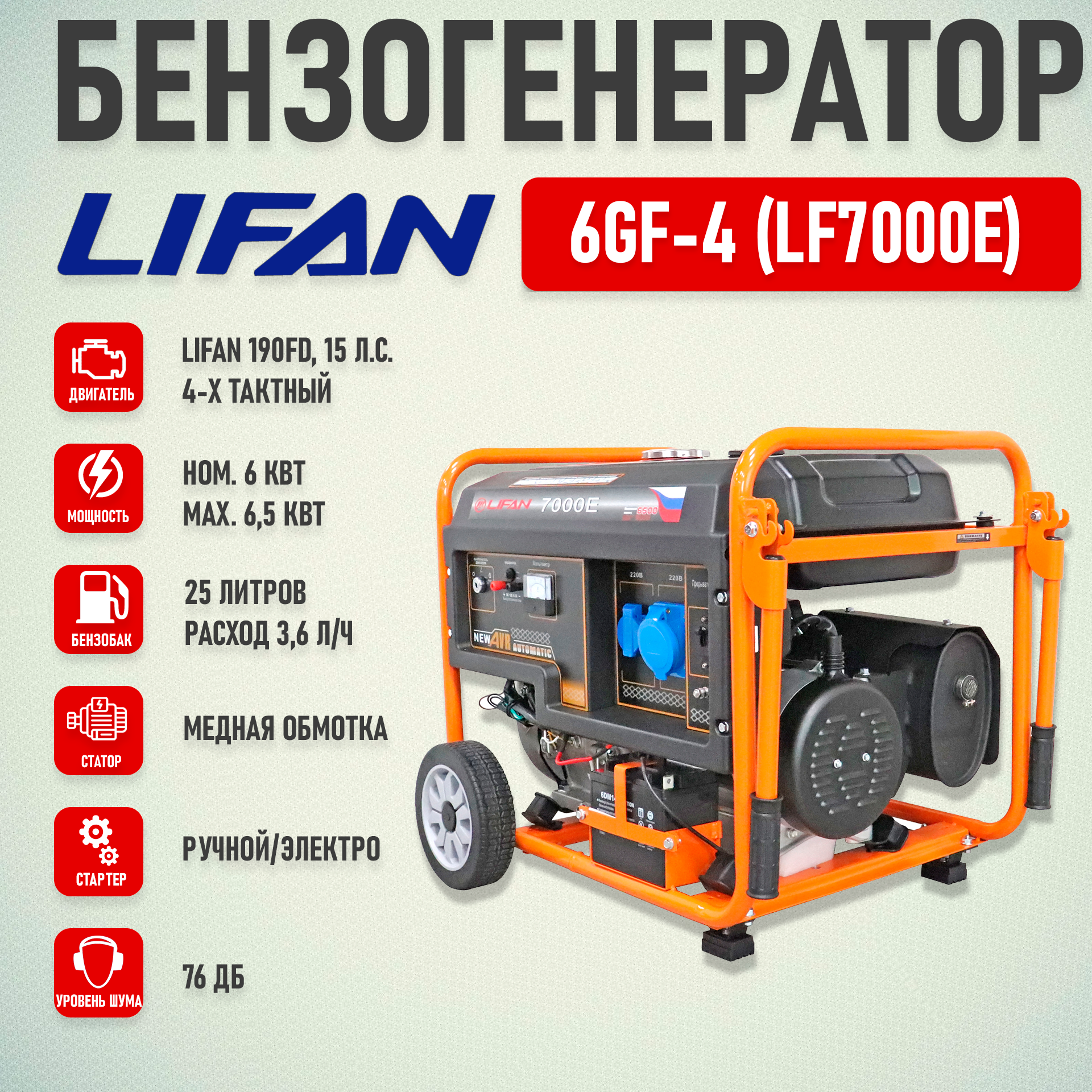 Генератор бензиновый Lifan 6 GF-4 (LF7000E) 6.5кВт 220В 25л одна фаза интересное: