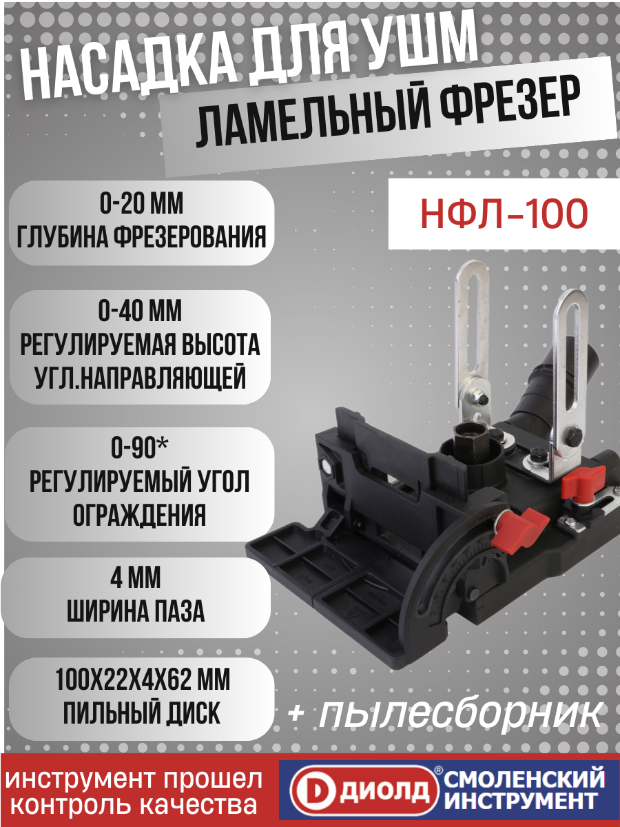 Насадка для УШМ ламельный фрезер диолд НЛФ-100 / насадка на болгарку для формирования пазов, производитель Россия