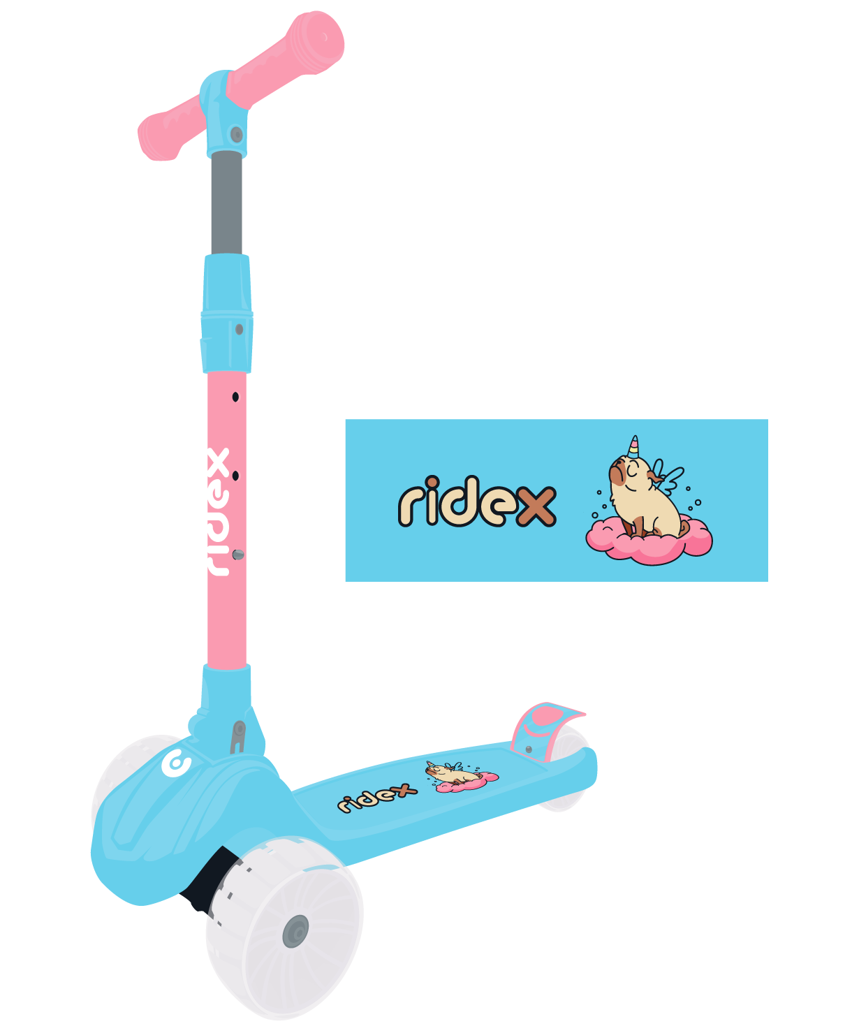 Самокат 3-х колесный RIDEX Juicy R, 120/80 мм, голубой/розовый