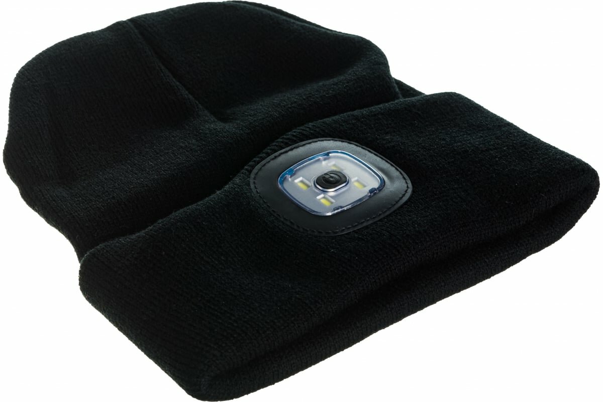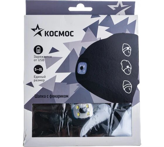 Купить Шапка с фонариком 215х205х5 черн. (фонарь 66х50х15мм снимается; аккум. 3.7В/200мА.ч) 3 режима свечения Космос KOCHat_black