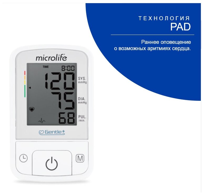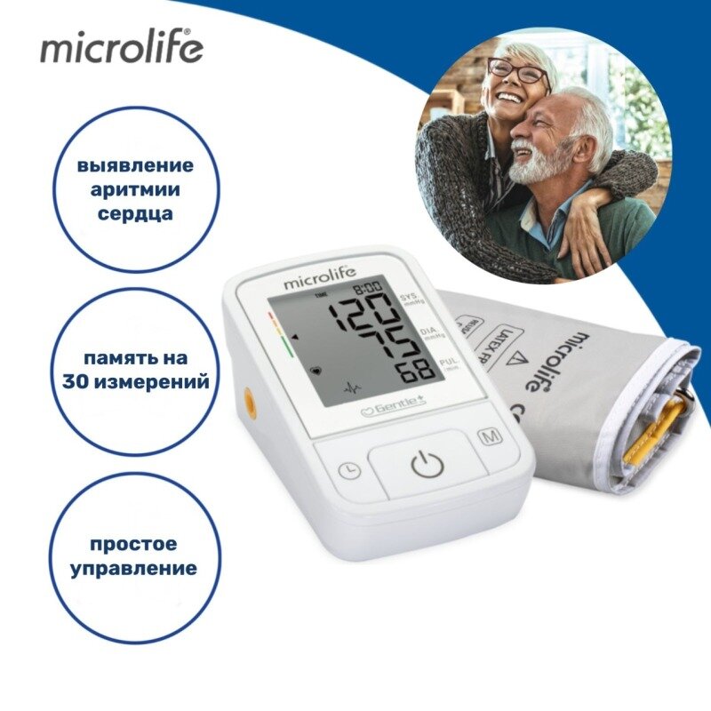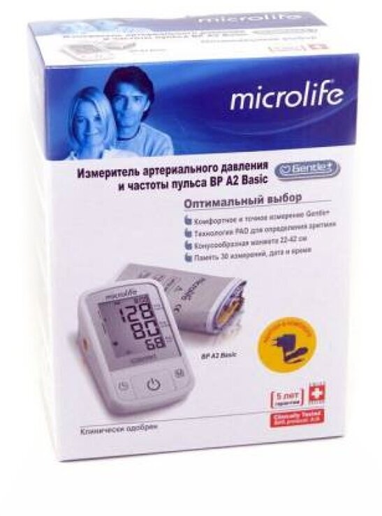 Тонометр автоматический Microlife BP A2 Basic, выявление пульсовой аритмии, Gentle+, с адаптером