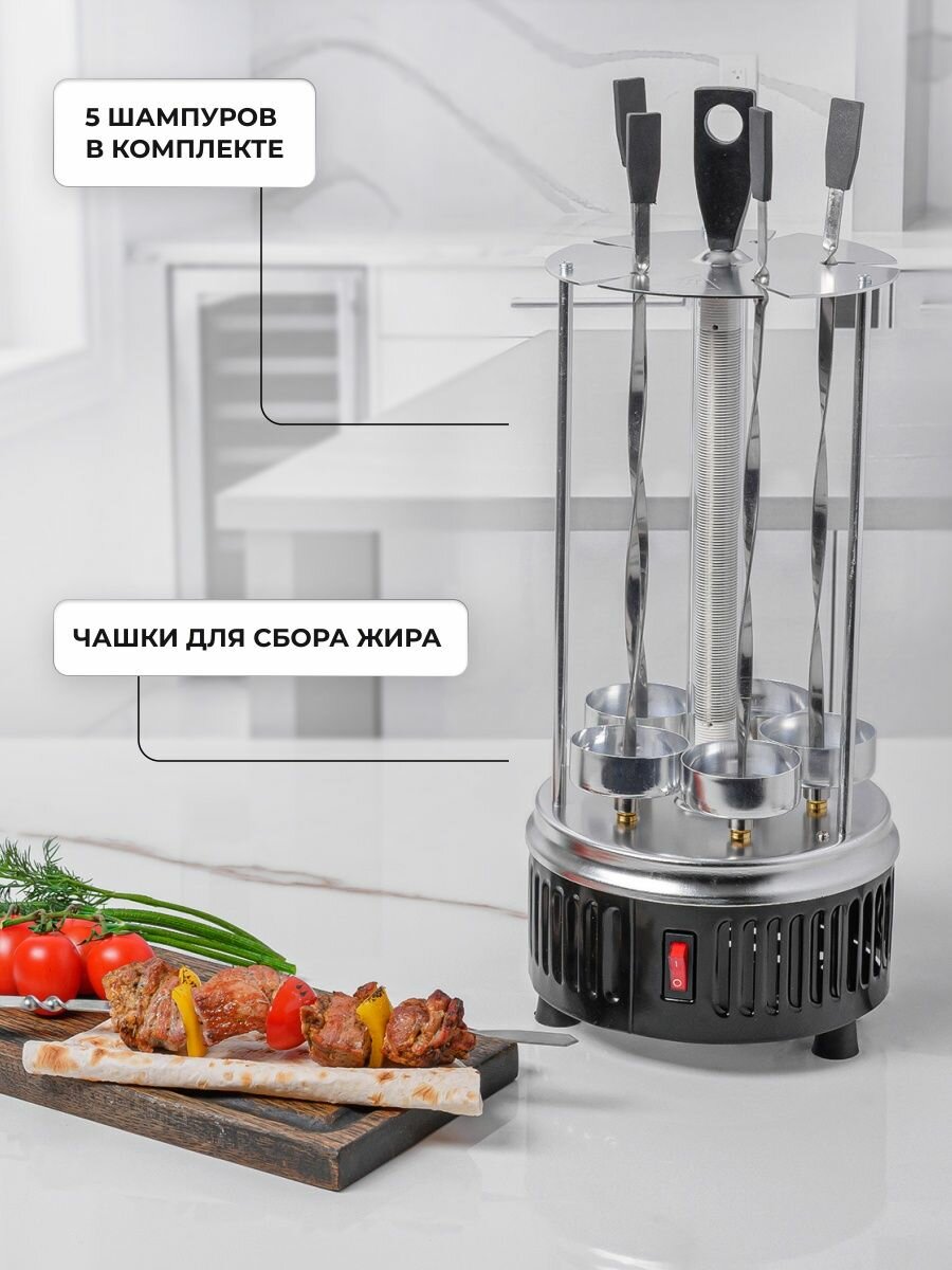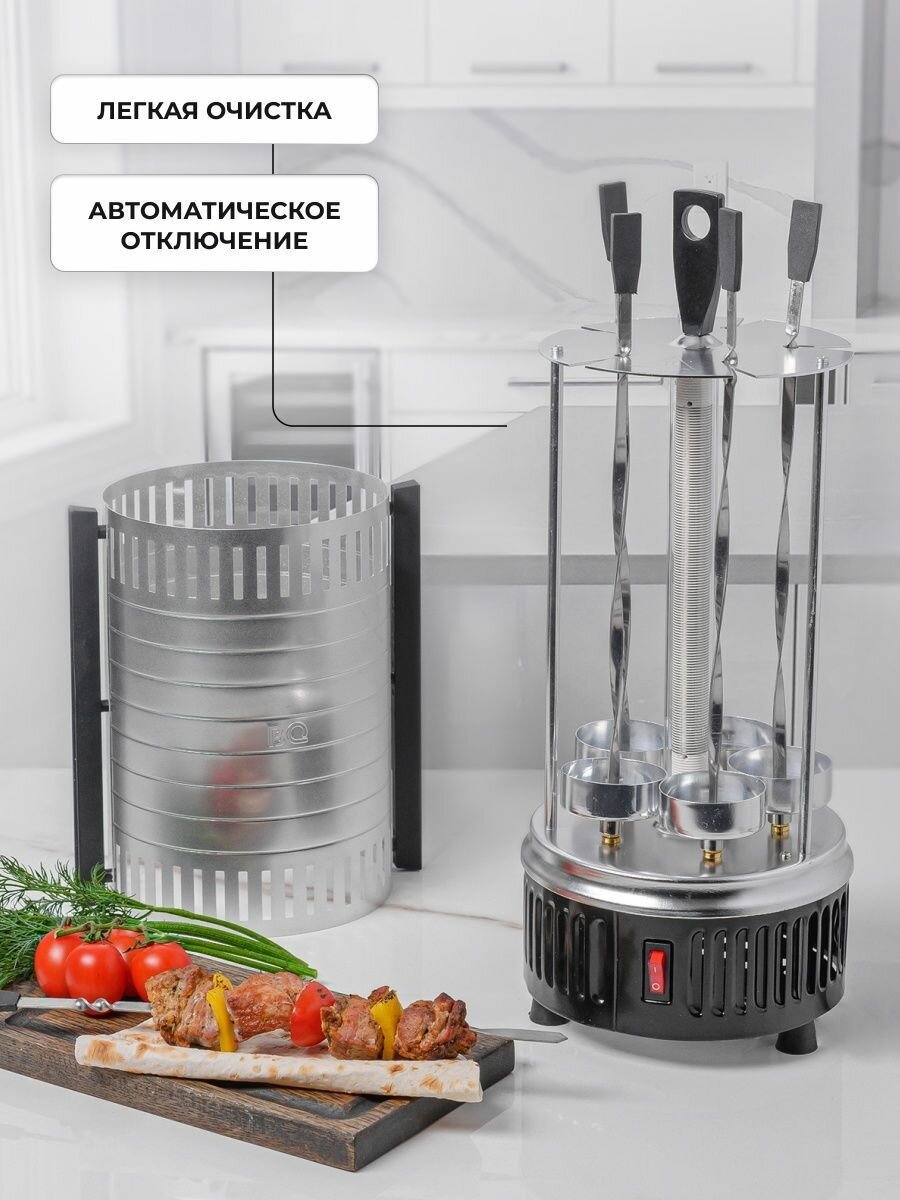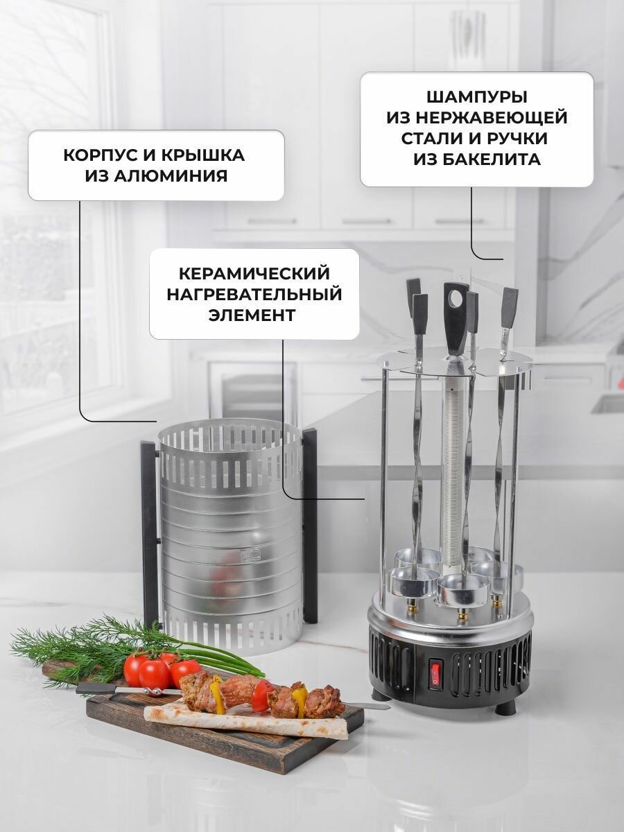 | Дополнительная информация | температура нагрева до 240’C, автоматическое вращение шампуров, длина шампура 30.9 см |
